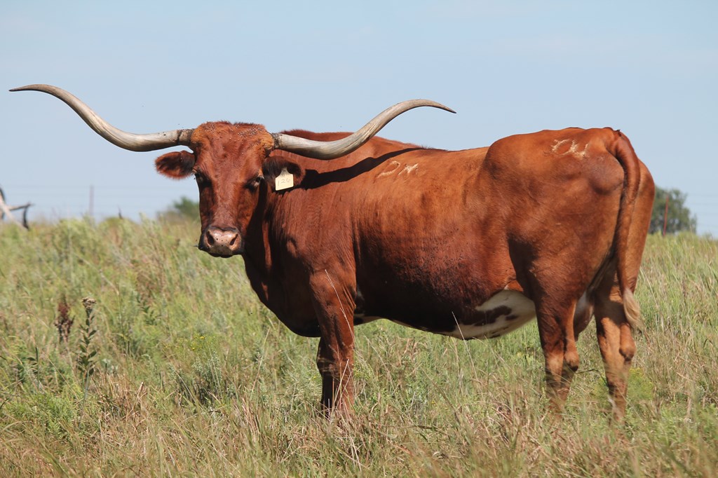 THIS FANTASTIC COW HAS PRODUCED SOME OF OUR BEST "BOOMERANG" DAUGHTERS LIKE "EOT OUTBACK GLORIA" AND "EOT OUTBACK GLORY" AND HAS NOW PRODUCED TWO EXCITING DAUGHTERS BY "MAJESTIC ADMIRAL" THAT HAVE EXTREME LATERAL HORN GROWTH AS WELL AND ARE THE TOTAL PACKAGE!
